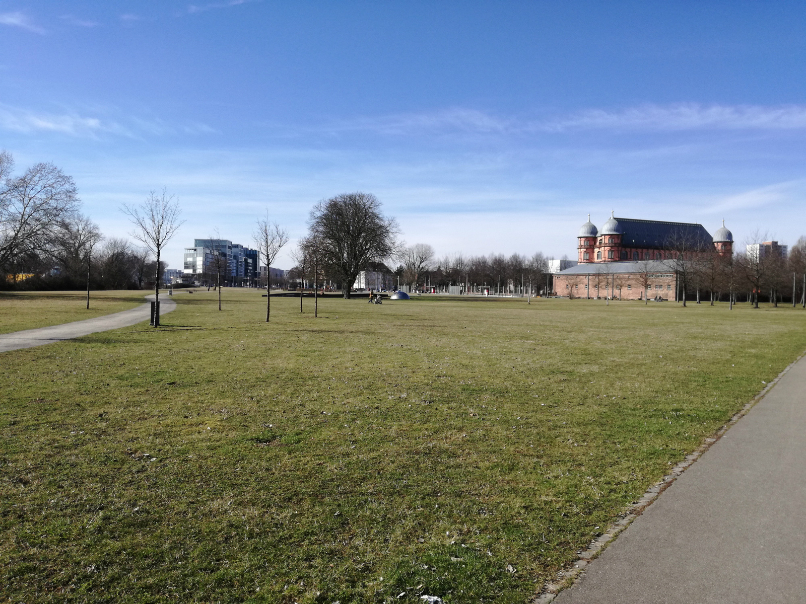 Otto Dullenkopf Park is located between Gottesaue Castle and Durlacher Allee. In addition to the green space, there is also a fun park in the southeast corner of the park with a soccer field, a basketball court, and a skate park.